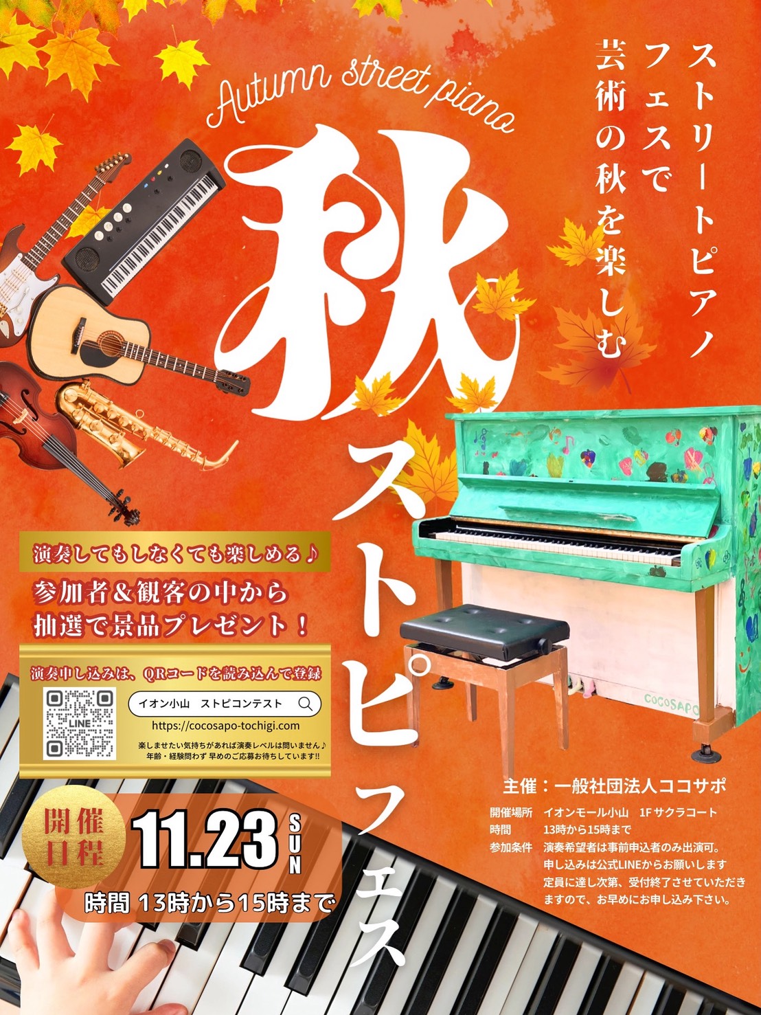 11/23(日)🍂イオンモール小山【秋ストリートピアノフェス】